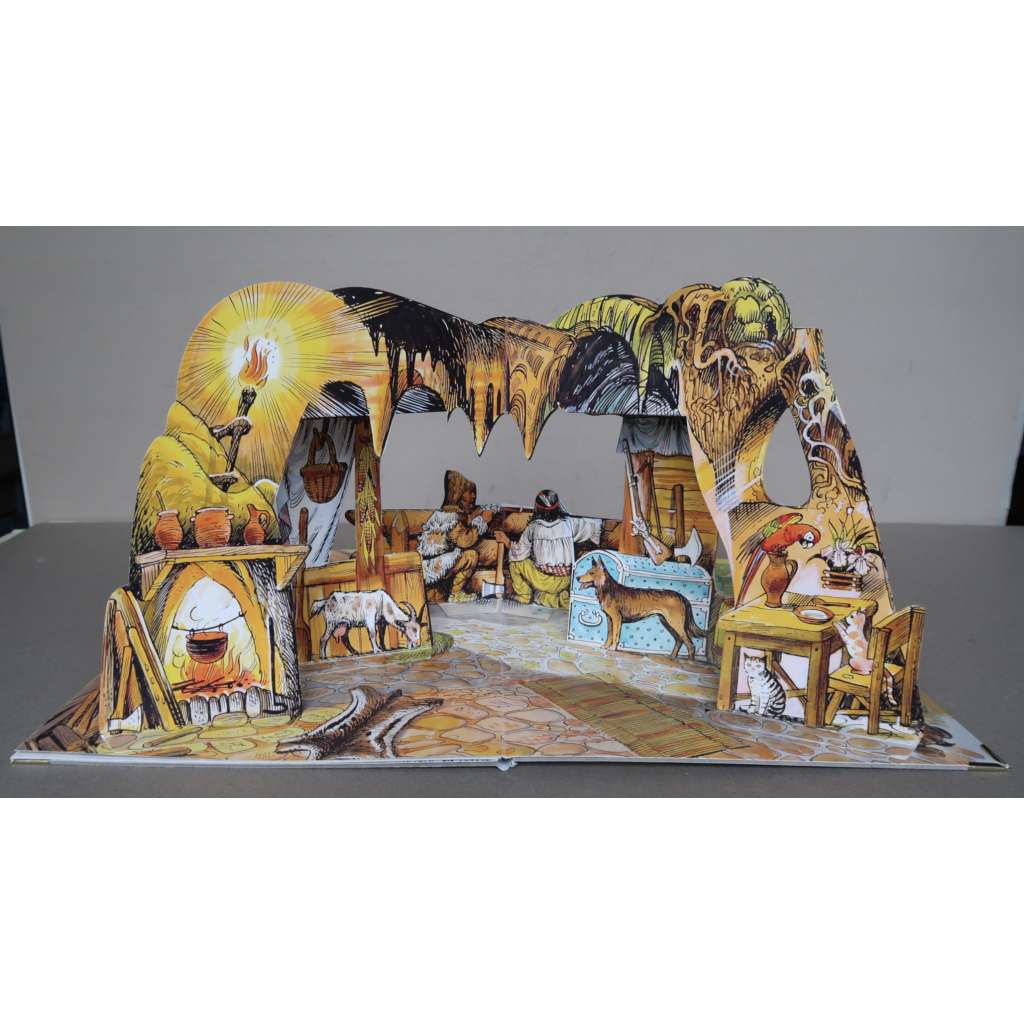 Tvrdé kartonové desky s kovovými chrániči na rozích, přední desky s výřezem a folií, celkem 16 nečíslovaných stran, první a poslední dvojstrana s rozkládacími prostorovými barevnými ilustracemi + 12 stran textu a barevných ilustrací, rozměry 24 x 32 cm.