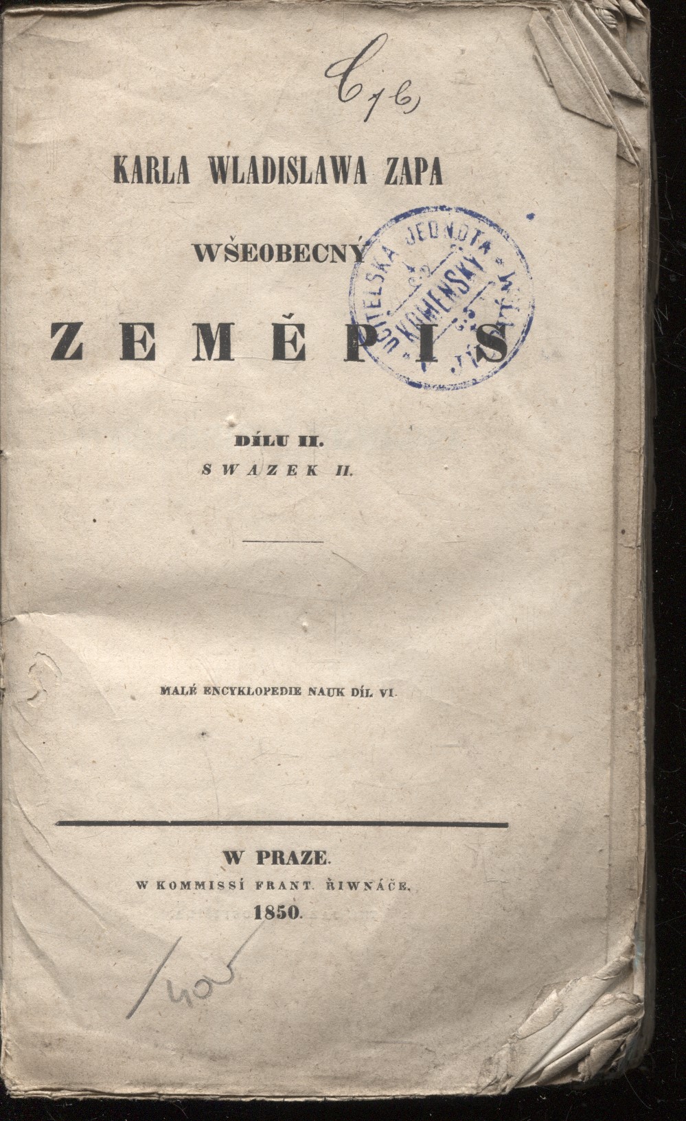 W kommissí u Frant. Řiwnáče, Praha 1849. Nowočeská bibliothéka, číslo XVIII. Poloplátěná slepá převa..