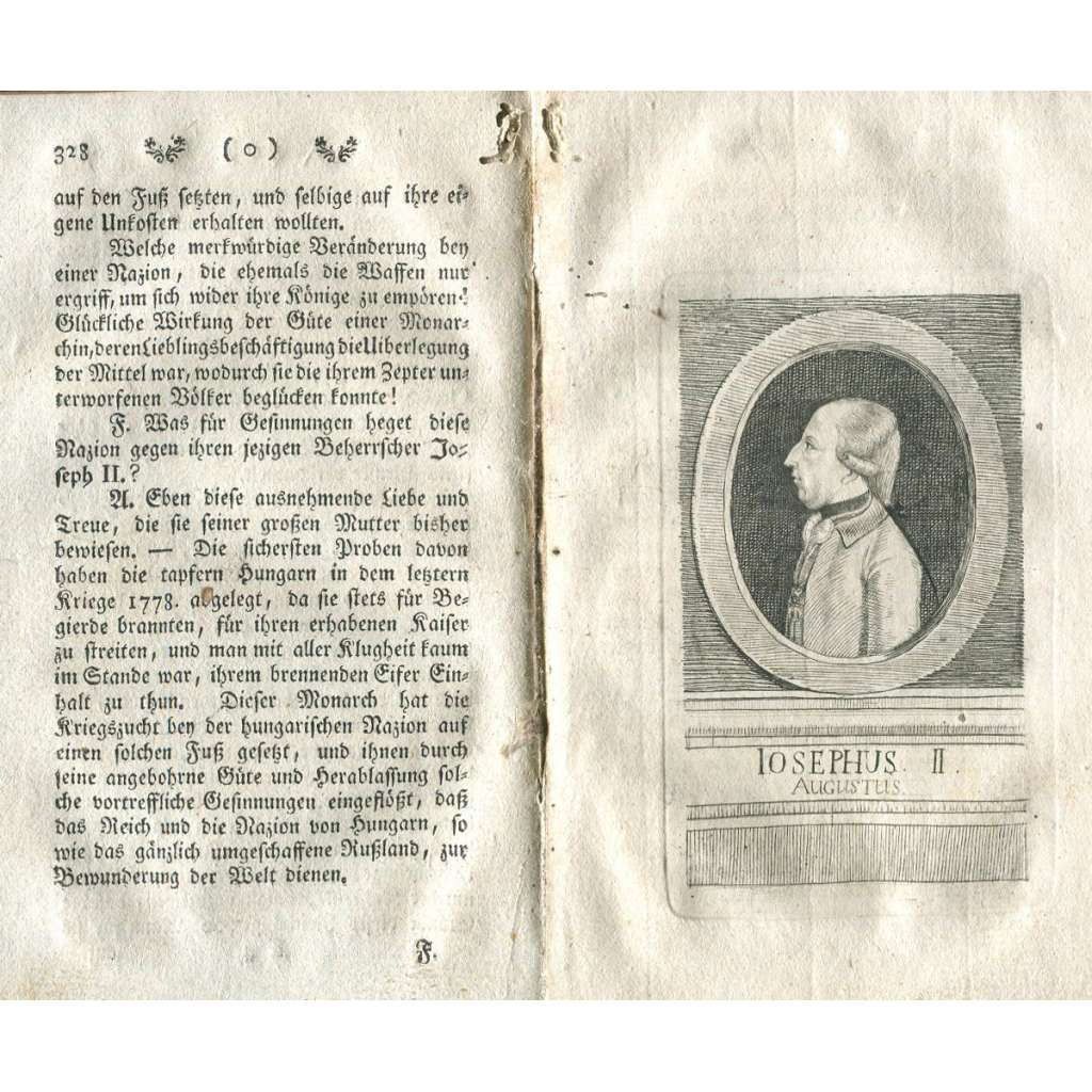 Kniha obsahuje tři tabule s mědiryty: portréty Kateřiny Veliké, Bedřicha Velikého a Josefa II. Zdobeno vinětou na titulu, vlysem a koncovou vinětou.