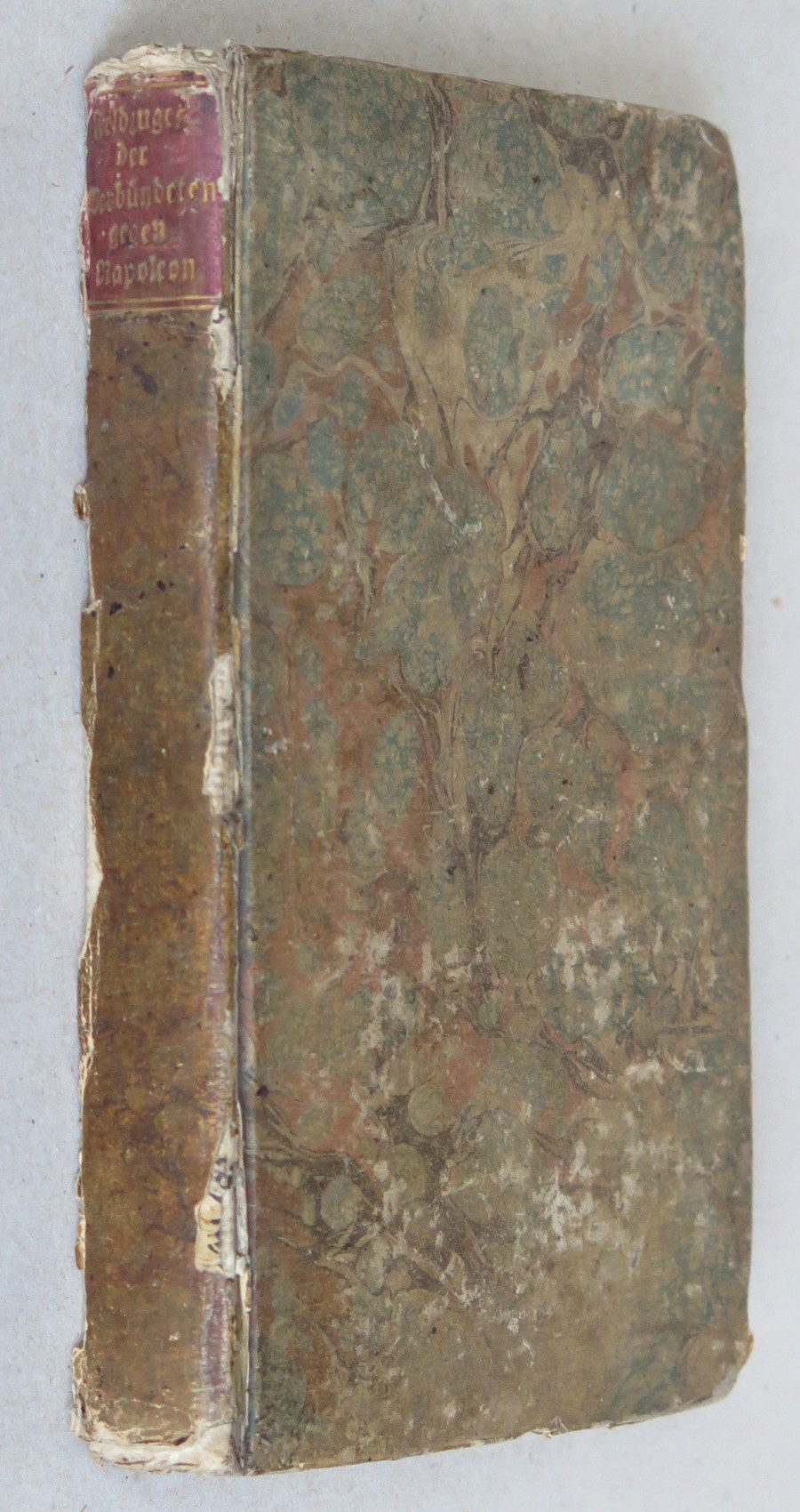 Dobrý stav; desky opotřebované a vybledlé, stránky zažloutlé, občas s menším počtem žlutých skvrnek od stáří.