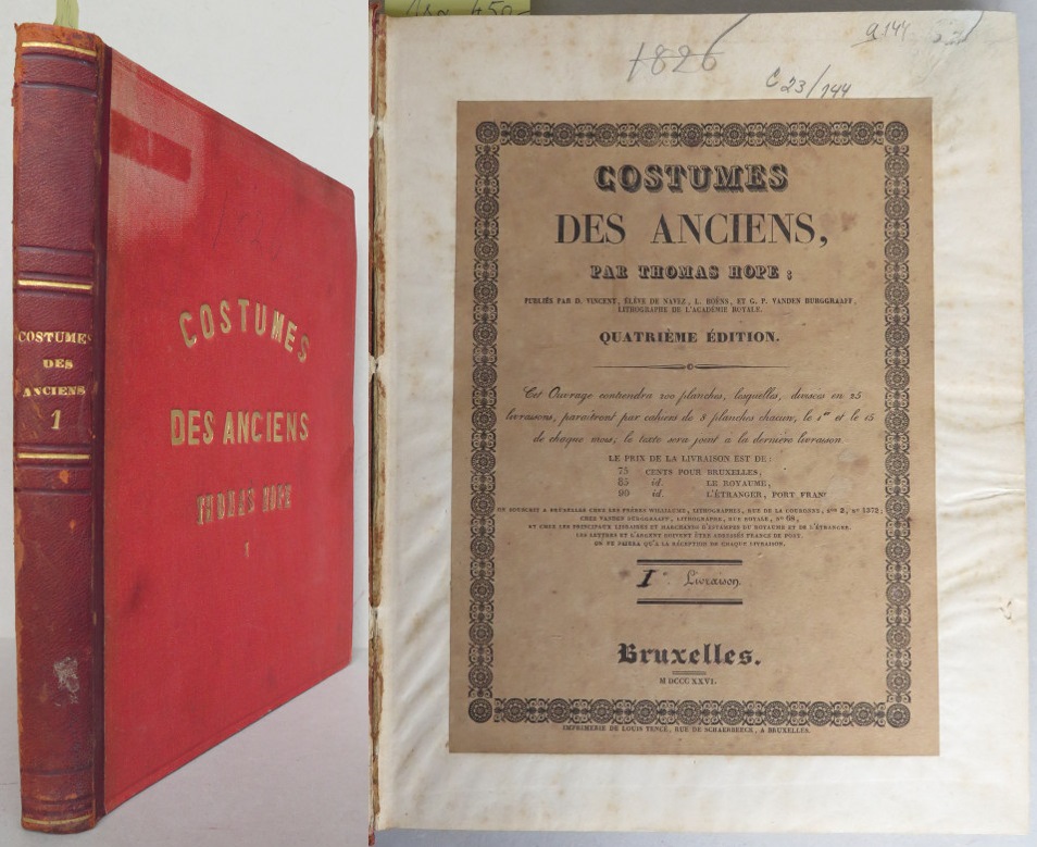 Štítky se signaturami na předních deskách a na hřbetu, exlibris na přídeští a razítko předchozího majitele na titulní straně, větné zrcadlo trochu zahnědlé, jinak pěkně zachováno, celkově velmi dobrý