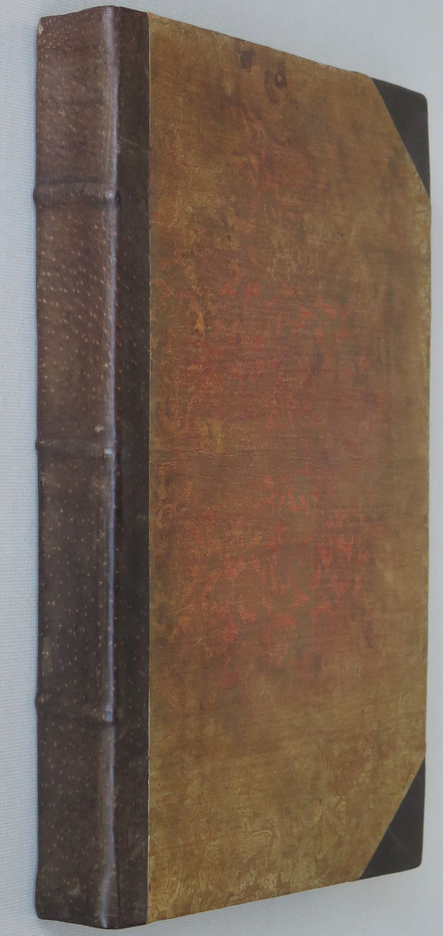 Dobrý stav; kůže odřená, rohy desek naražené, přední předsádka se skvrnou, navíc odlepena od desky, na předsádkách jsou velmi stará rukopisná exlibris, vazba nalomená (viz foto; knižní blok však drží