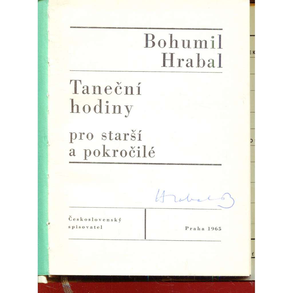 Taneční hodiny pro starší a pokročilé (podpis Bohumil Hrabal)