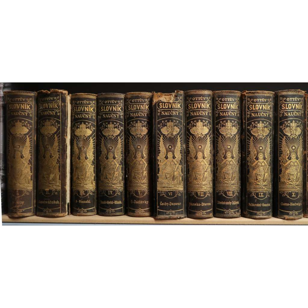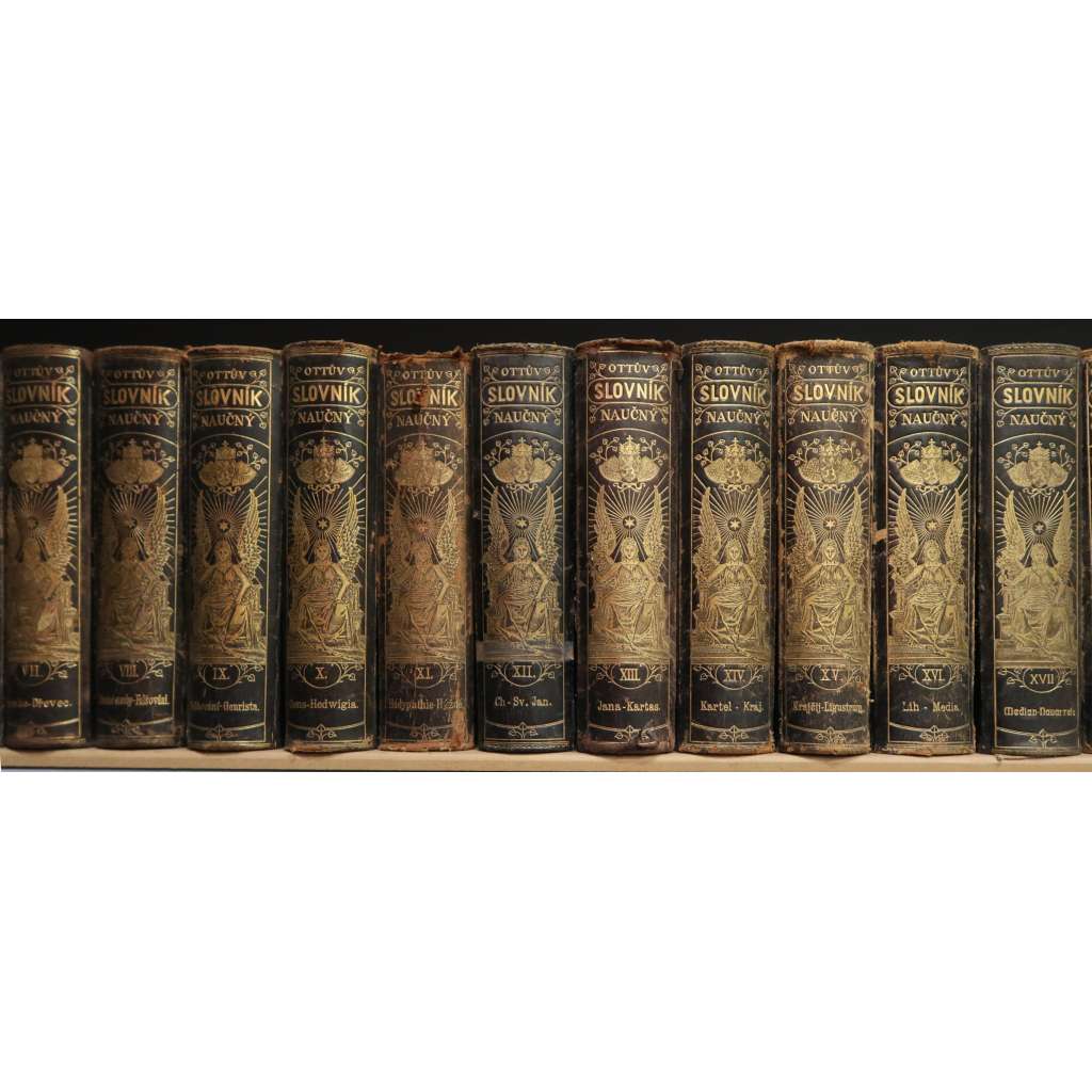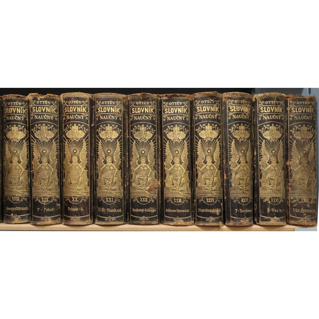 Ottův slovník naučný, základní řada 27 svazků zabírá všechna hesla od A do Ž.