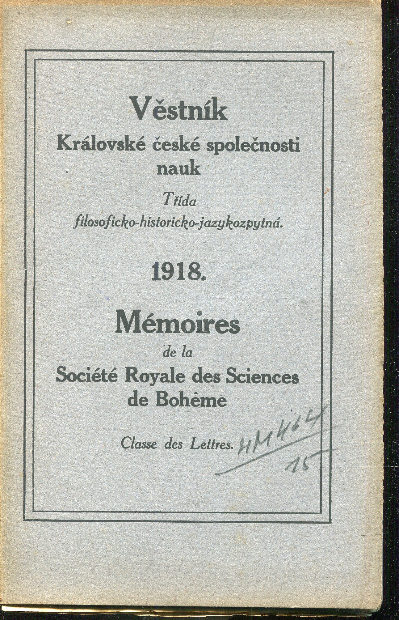 Jedná se o druhý díl apart. Kr. česká spol. nauk, Praha 1937. Rozpravy KČSN, třída fil. hist. jazyko..