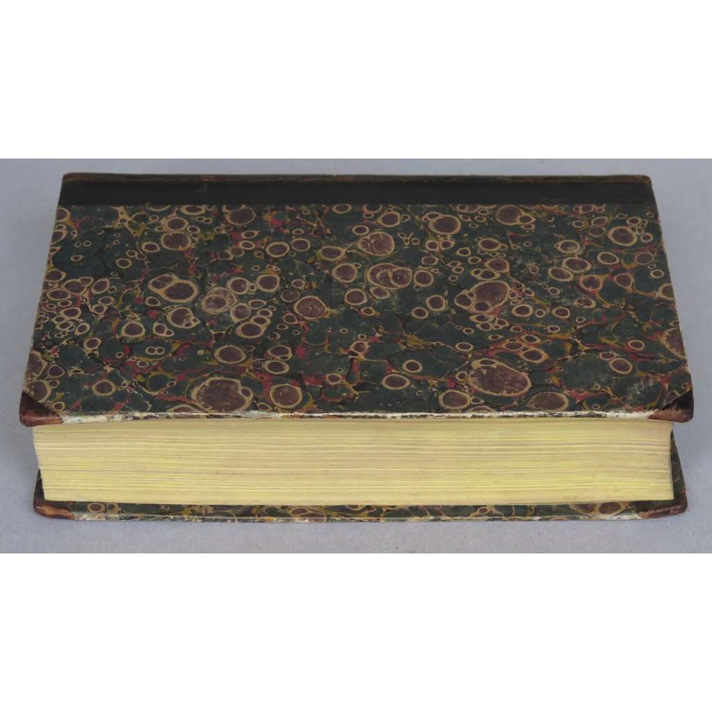 Stav knihy: Desky opotřebované a trochu vybledlé, kůže mírně odřená, rohy desek mírně naražené, předsádky zažloutlé, část stránek zažloutlých či se žlutými skvrnkami, na přední předsádce, patitulu a titulu jsou razítka a signatury; dobrý stav.
