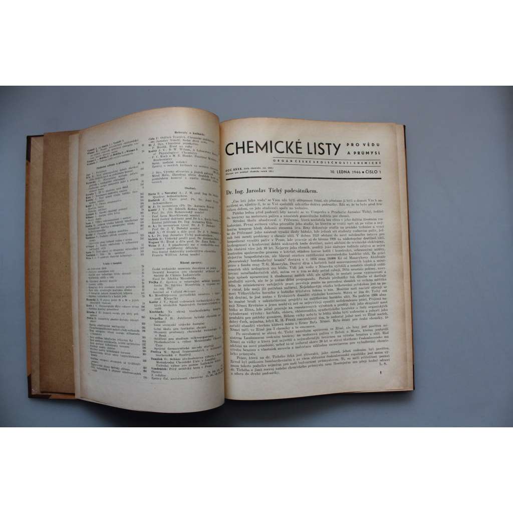 Chemické listy pro vědu a průmysl 1946. roč. 40 (časopis, chemie, mj. J. Heyrovský - Oscilografický výzkum reversibility dějů na rtuťových kapilárních elektrodách; O. Wichterle - POdstata cyklo-acyklo-tautometrie; Atomová energie)