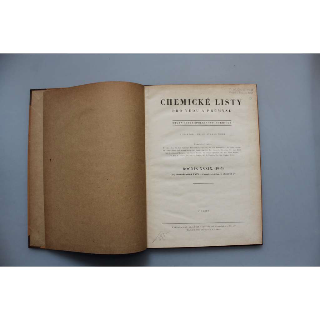 Chemické listy pro vědu a průmysl 1945. roč. 34 (časopis, chemie, mj. O některých reakcích hafnia, O. Wichterle - Chlorkrotylovaný acetoooctan a jeho cyklisace kyselinou sírovou)