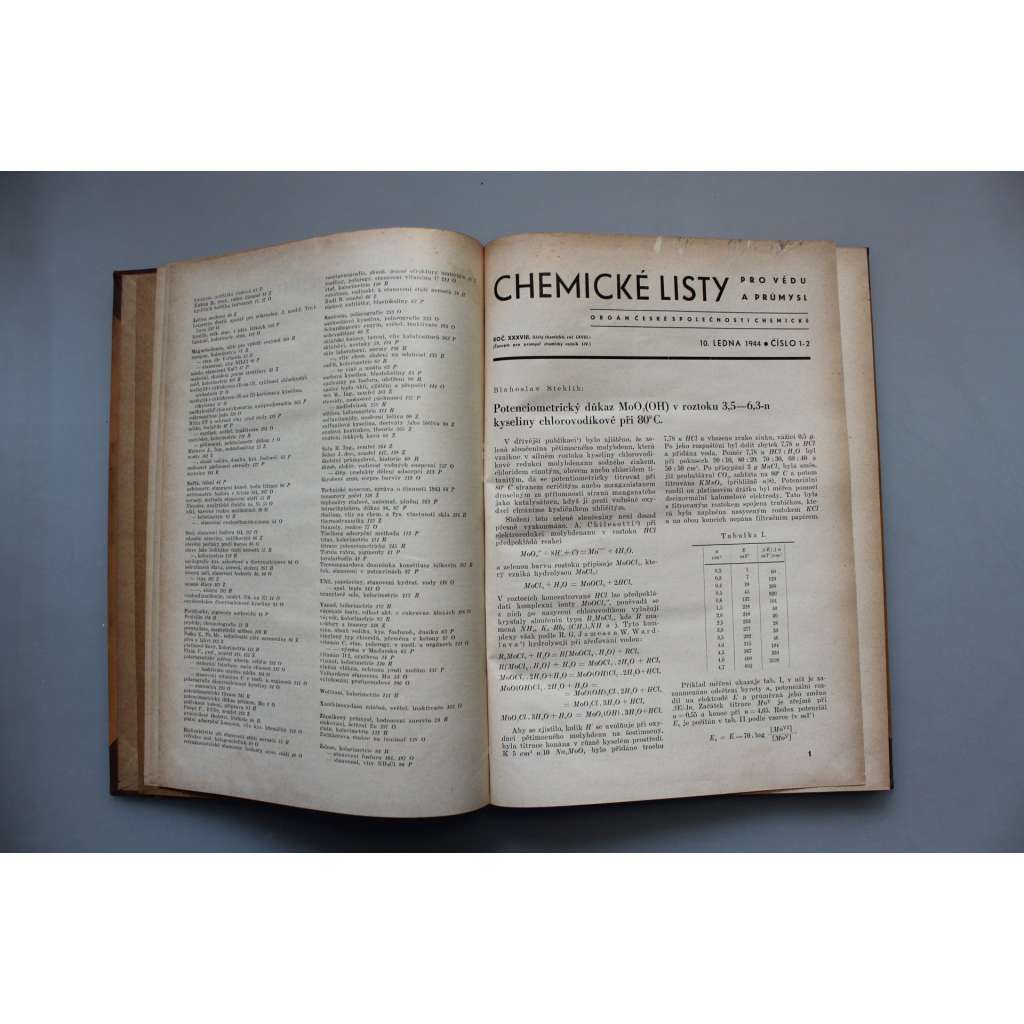 Chemické listy pro vědu a průmysl 1944. roč. 28 (časopis, chemie, mj. Přspěvek k analyse ftaloplastů, O protiproudném vyluhování, O názvosloví uhlohydrátů, Chromatografická analysa)