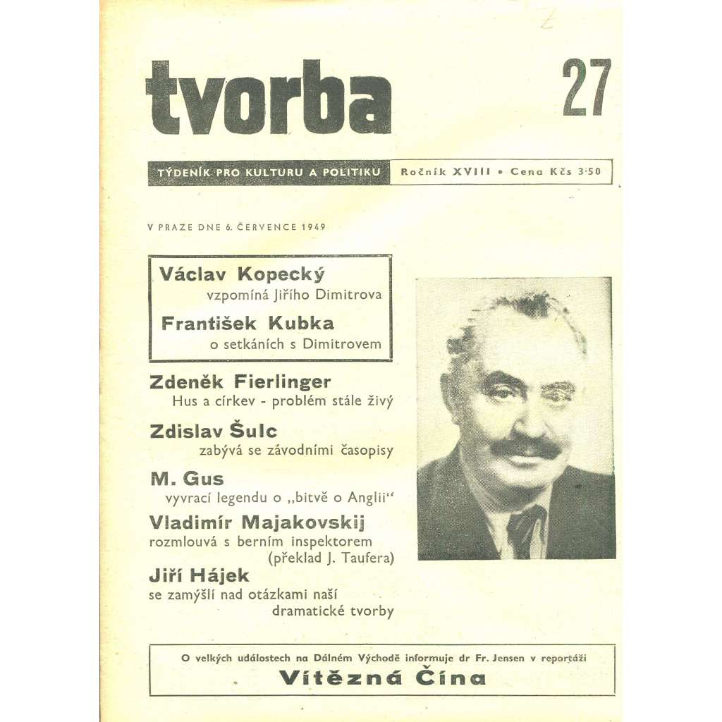 Tvorba – Týdeník pro kulturu a politiku, ročník XVIII., číslo 27/1949 (časopis, noviny)