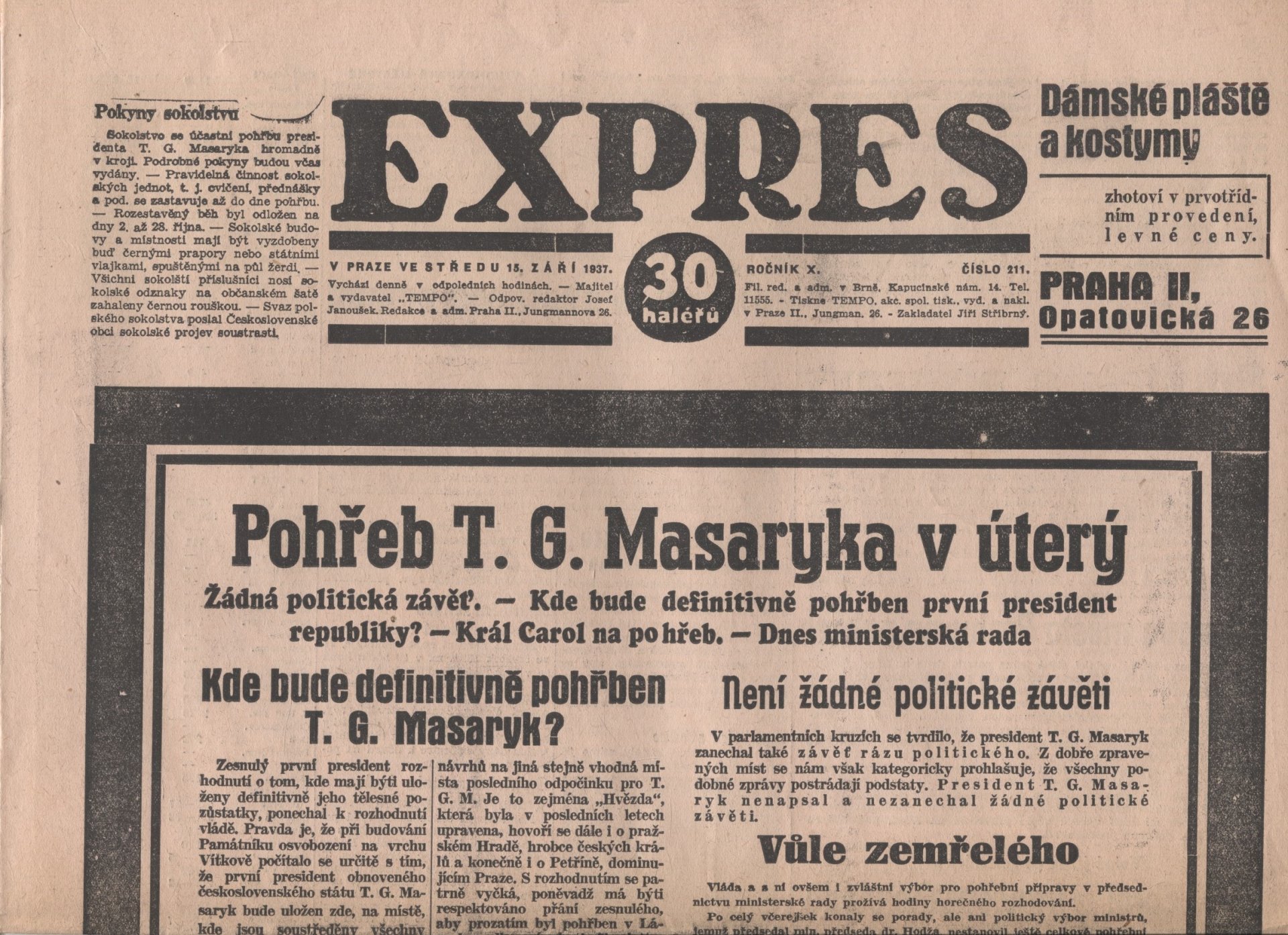 Nákladem čas. Svědomím českých dějin, Brno 1920. Převazba, stran 49, rozměry: 13 x 17 cm.