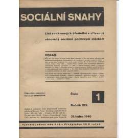 Sociální snahy, ročník XIX., číslo1/1940. List soukromých úředníků a zřízenců věnovaný sociálně politickým otázkám