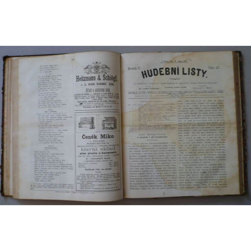 Kompletní II. ročník Hudebních listů, Orgánu ústřední jednoty zpěváckých spolků československých. Poloplátěná vazba, 4°, 373 stran.