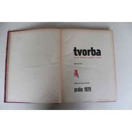 Tvorba. Týdeník pro literaturu, politiku a umění, ročník 4 1929 [sv. 2] (časopis, avantgarda, první republika, mj. K. Teige - Dílo a poslání Adolfa Loose, O Levé frontě, Legér - Malířství a film, Frigo, Apollinaire - prší, Štyrský)