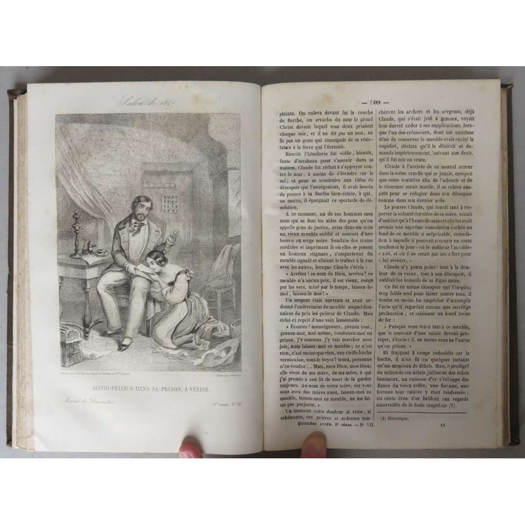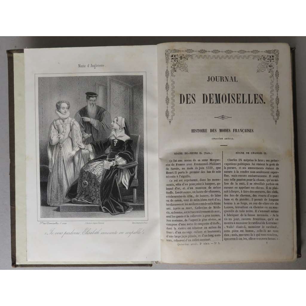Vydání: Paris: Bureau du Journal 1847, dobová celoplátěná vazba se štítkem na hřbetu, 384 stran, 2 barevné litografie (móda) a 5 čb. tabulí, 4° (15,5 x 23 cm)