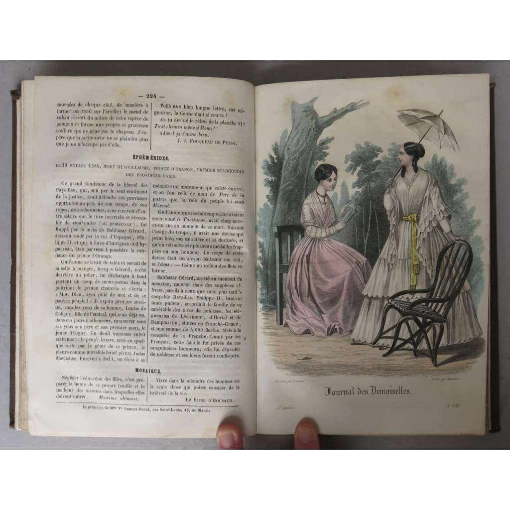 Journal des Demoiselles; Quinzième année, 1847 [móda, kolorované litografie, staré tisky]