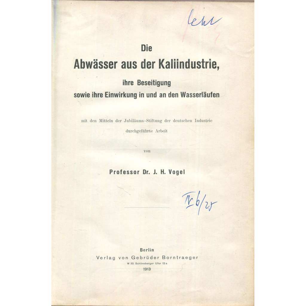 Die Abwässer aus der Kaliindustrie, ihre Beseitigung sowie ihre Einwirkung in und an den Wasserläufen [potaš; draslo; potašový průmysl; vodohospodářství; uhličitan draselný; chemie]