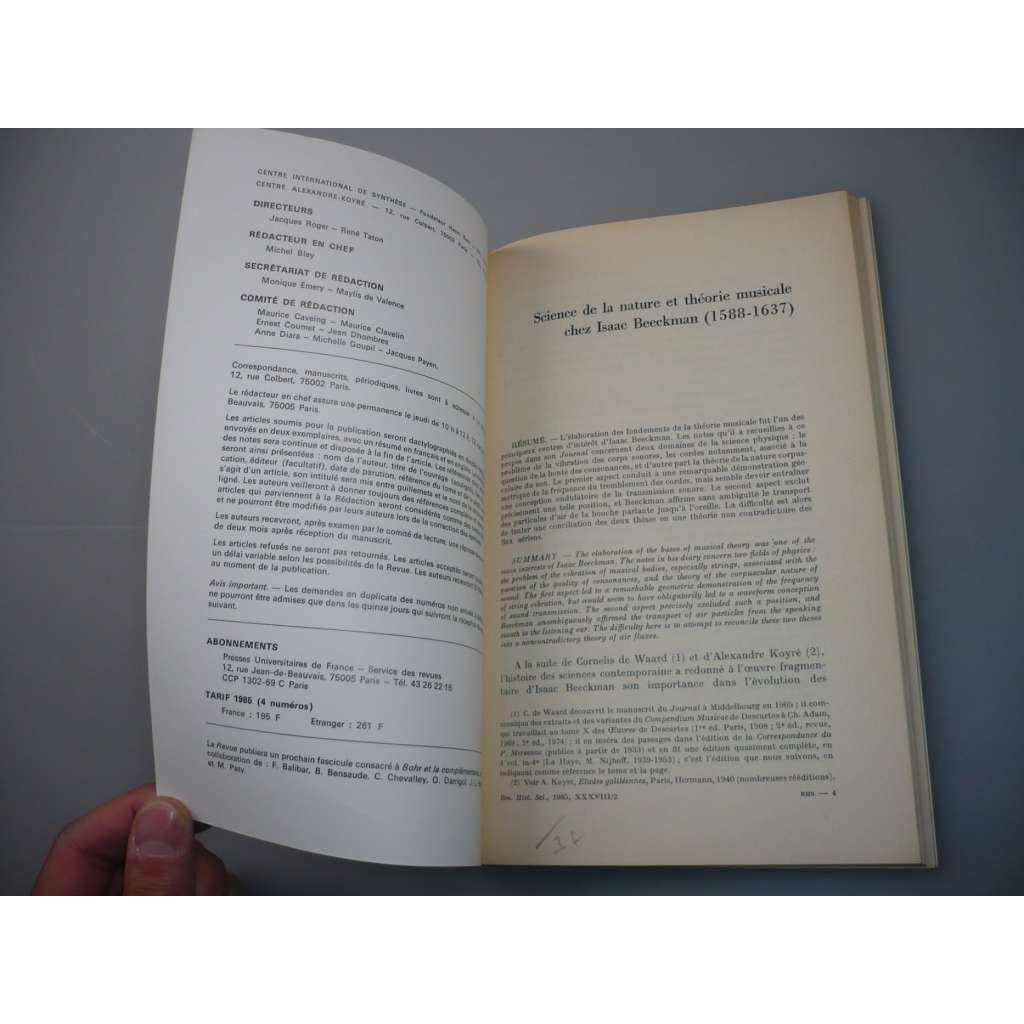 Revue d'Histoire des Sciences et de leurs Applications [Tome XXXVIII. N° 2 – Avril-Juin 1985] (Přehled dějin věd a jejich aplikací)