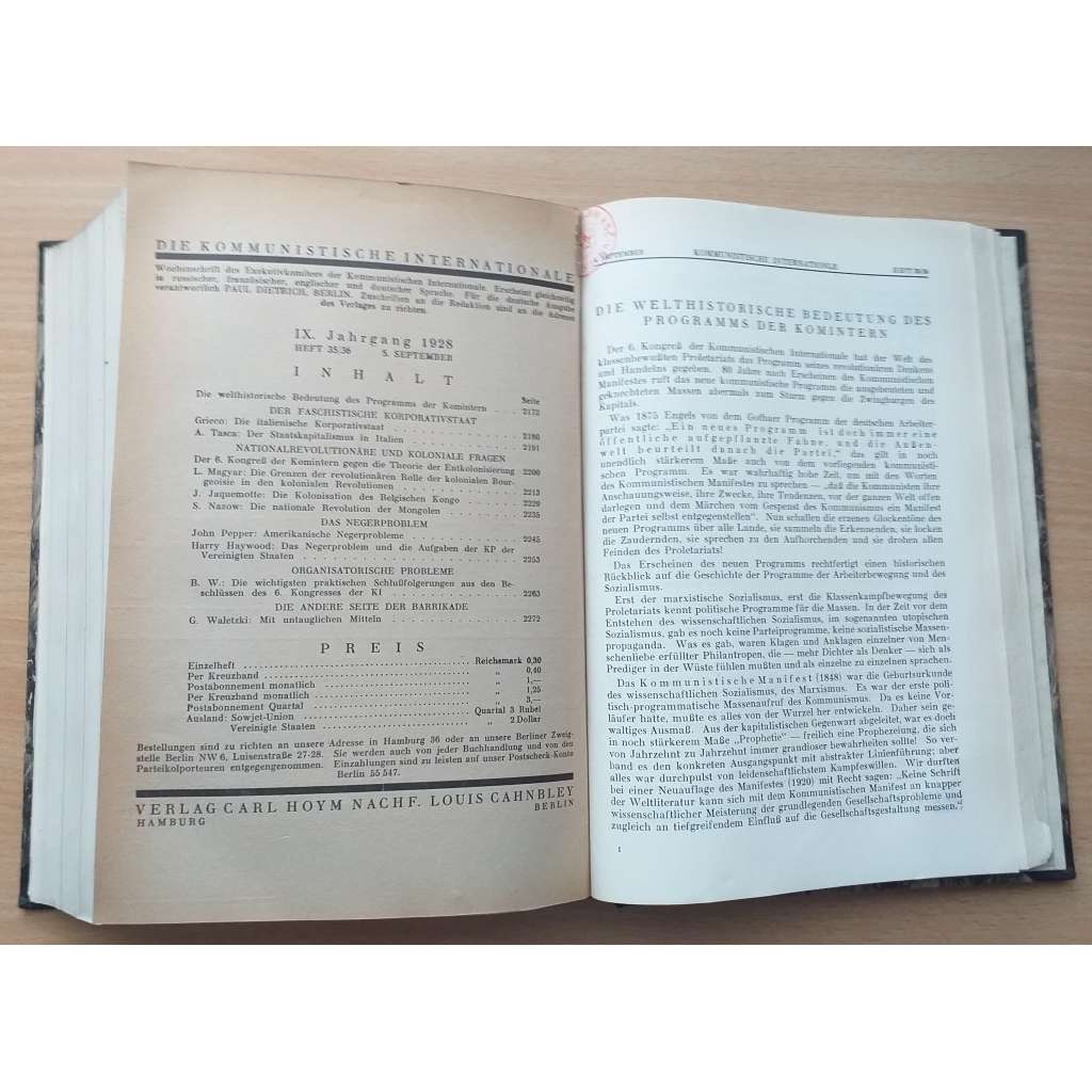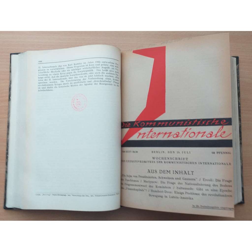 Týdeník Výkonného výboru Komunistické internacionály; 6. kongres Kominterny, kongres II. internacionály, třídní rozdělení, poválečná ekonomika, fašismus, boj odborů, austromarxismus, Čína, Latinská Amerika, Velká Británie, Itálie, Mongolsko, problémy amerických černochů, kolonie