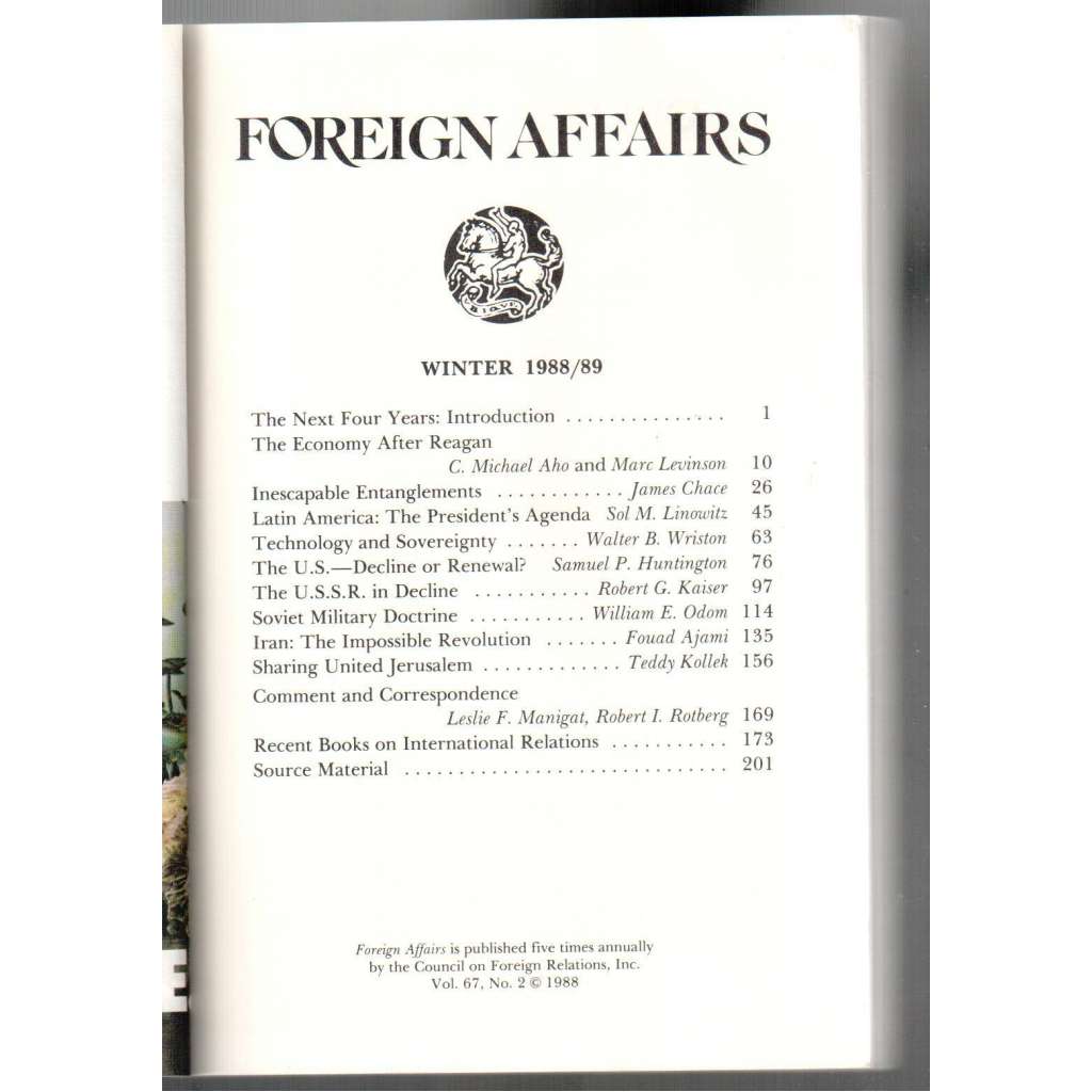 Americký časopis pro mezinárodní vztahy a zahraniční politiku USA, ekonomika po Reaganovi, úpadek nebo obnova USA?, SSSR v úpadku, sovětská vojenská doktrína, Latinská Amerika