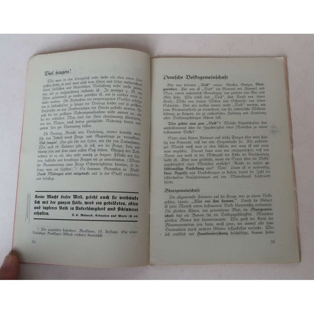 Jedno číslo nepravidelně vydávaného časopisu vydávaného členy Sudetoněmecké strany pro politické pracovníky strany, velká část je vždy věnována školení v řečnickém umění a o výběru temat, o kterých se má na veřejnosti hovořit, v duchu nacistické propagandy.