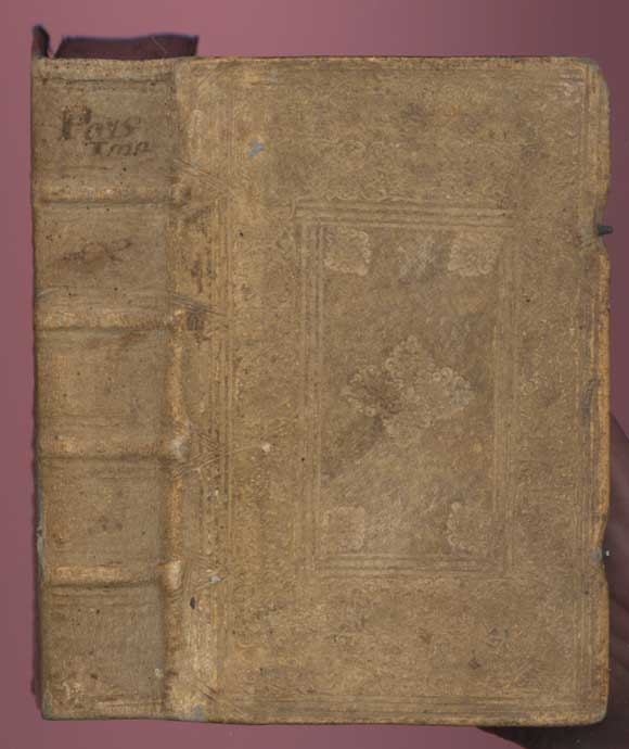 Slušný stav. Desky zašpiněné a odřené, hřbet vybledlý a plátno na okrajích natržené, vazba před patitulem naprasklá, i uvnitř na několika místech lehce naprasklá (viz obr. 5) - knižní blok ale drží vž