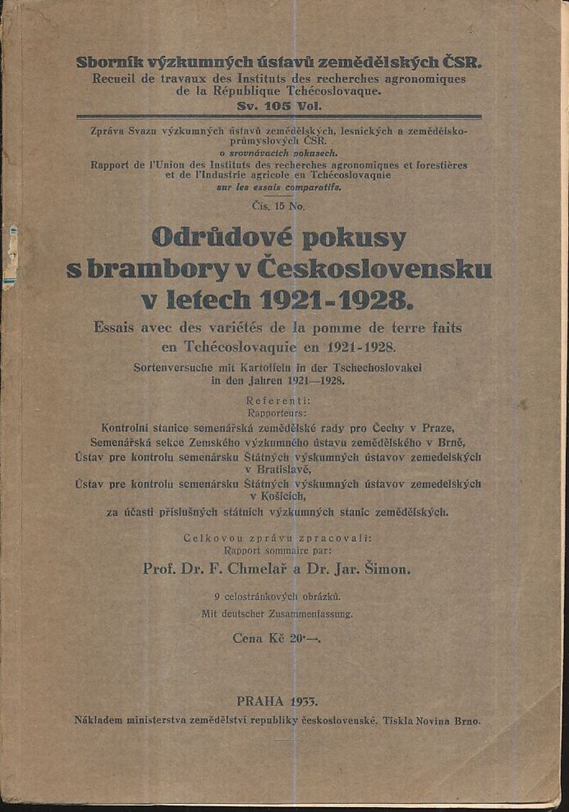 Brož., 30str. textu a 24 tabulkových stran s mnoha obr.4°. Praha, Č.G.U., 1945.