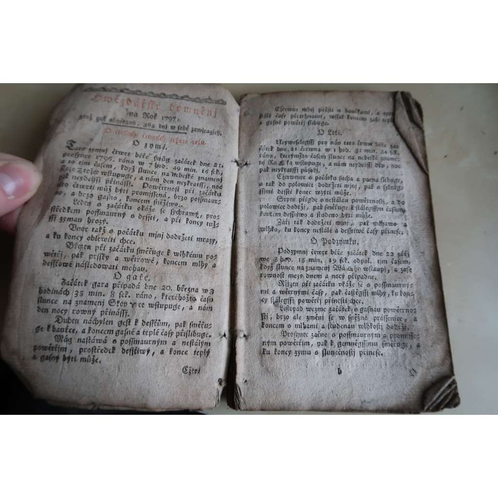 starý kalendář aneb Hvězdářské domnění na rok 1797 (není kompletní)