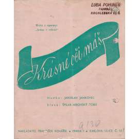 Stará písnička z první republiky, šlágr. Dvojlist (4 strany), složeno na 17 x 14 cm, uvnitř noty s textem písně. Waltz z operety "Srdce v rákosí".