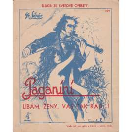 Stará písnička z první republiky, šlágr. Dvojlist (4 strany), složeno na 17 x 14 cm, uvnitř noty s textem písně. Píseň z operety "Paganini".