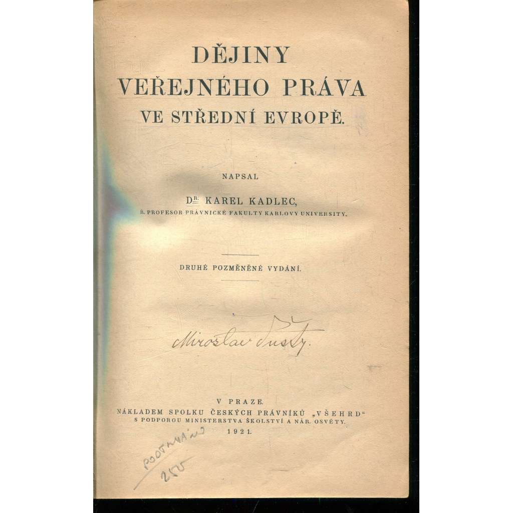 Nákl. spolku českých právníků Všehrd, Praha 1921.