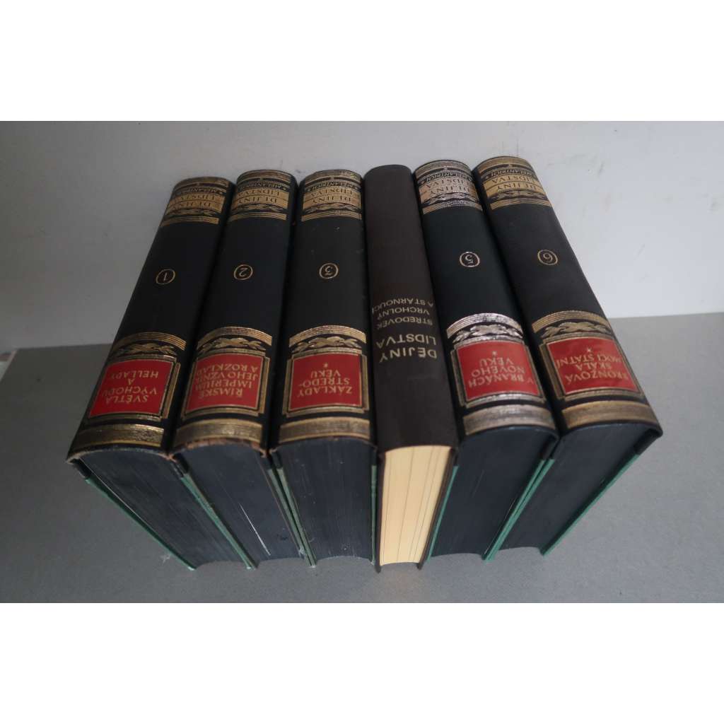 Dějiny lidstva od pravěku k dnešku - KOMPLET 6 sv. VAZBY KŮŽE (Světla vých. a Hellady; Římské imperium, jeho vznik a rozklad; Základy středověku; Středověk, vrcholný a stárnoucí; V branách nov. věku (1450–1650); Bronzová skála moci státní (1650–1789)