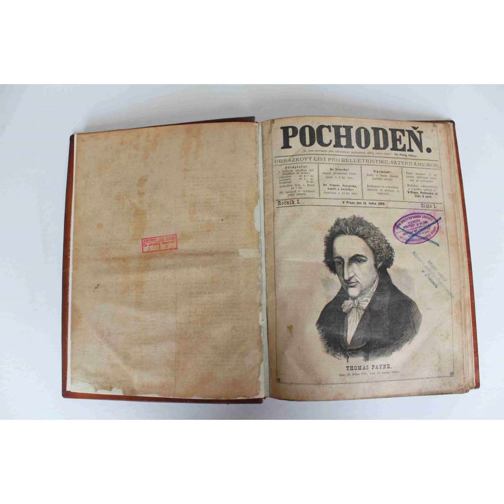 Pochodeň. Obrázkový list pro zábavu a poučení 1880-1881 (časopis, beletrie, mj. Thomas Payne, Italští socialisté, Karel Marx, Baruch de Spinoza, Myslivecký mládenec, Charles Darwin, Vojtěch Náprstek; vazba kůže)