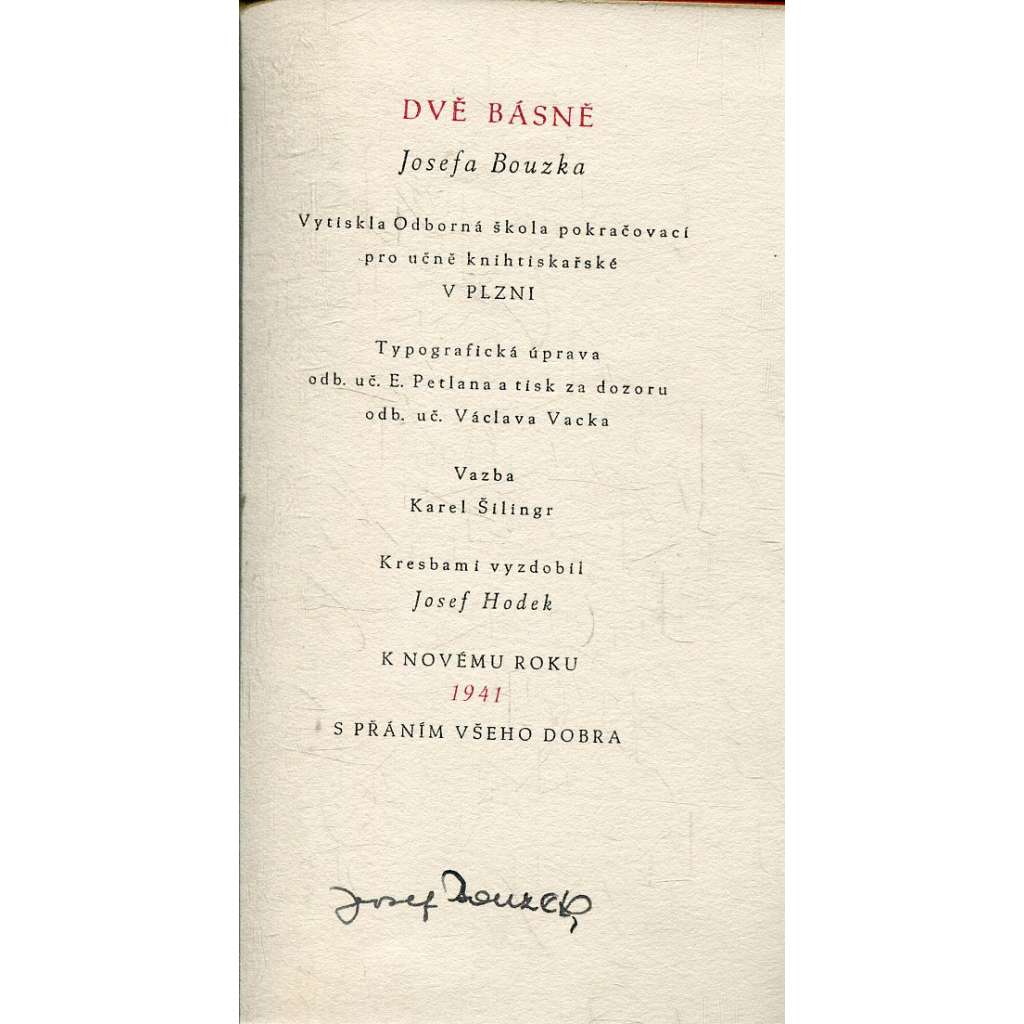 Autor: Josef Bouzek (podpis), Josef Hodek