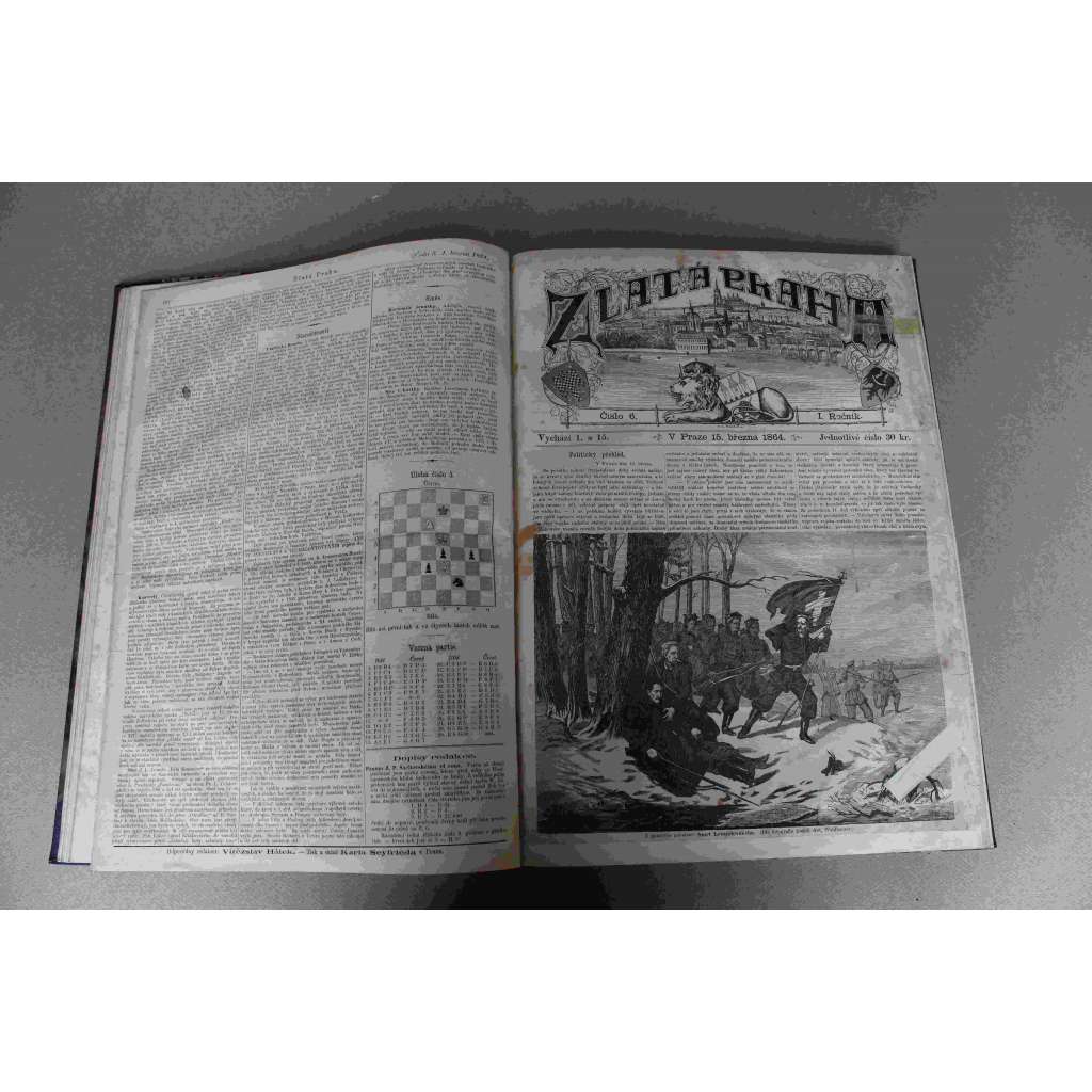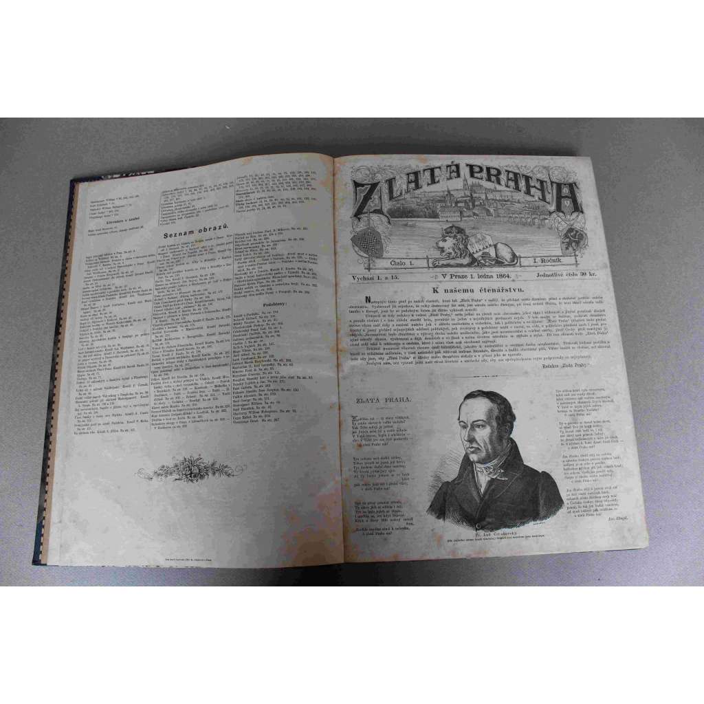 Zlatá Praha 1864 (časopis, kultura, poezie, beletrie, mj. V. Hálek - Pohádky pod Vyšehradem, Zazděný mnich; K. Světlá - Lamač a jeho dcera, J. J. Rousseau, Výprava do Sibiře, Karlův Týn, Hlavní chrám sv. Víta)