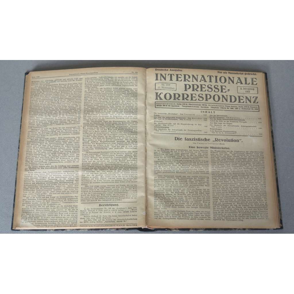 Některá čísla druhé poloviny (Halbjahr) druhého ročníku mezinárodní tiskové služby Komunistické internacionály. Svázána jsou čísla od 7. 10. 1922 (č. 195) do 30. 12. 1922 (č. 245); doplněno rejstříky pro celou druhou polovinu ročníku; chybí č. 196, 205, 207, 230 a 243.