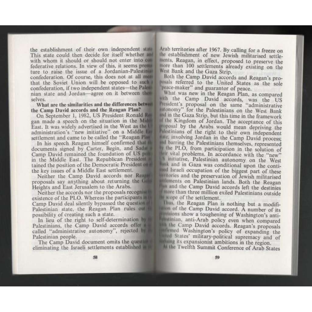Otázky a odpovědi týkající se postoje SSSR k problémům Blízkého východu, zásady řešení konfliktu na Blízkém východě, dohody z Camp Davidu, spolupráce mezi USA a Izraelem, role Organizace pro osvobození Palestiny