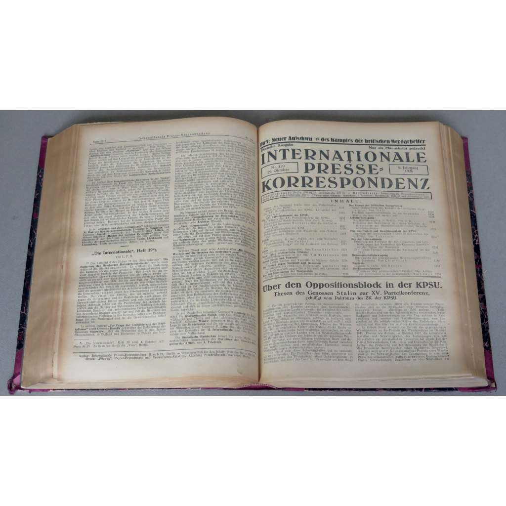 První polovina (Halbjahr) šestého ročníku mezinárodní tiskové služby Komunistické internacionály. Zahrnuje čísla od 5. 1. (č. 1) do 29. 6. 1926 (č. 89); doplněno rejstříky pro tuto první polovinu ročníku; žádné číslo nechybí.