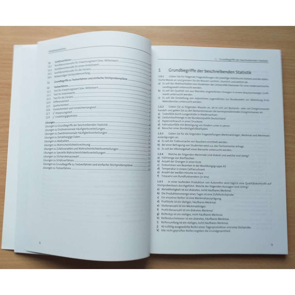 7. zcela přepracované vydání. 373 úkolů s částečně podrobnými řešeními, mezi hlavní témata patří: náhodné proměnné a rozdělení, výpočet pravděpodobnosti, odhadovací metody, testovací metody a výběr vzorků pro namátkové testy