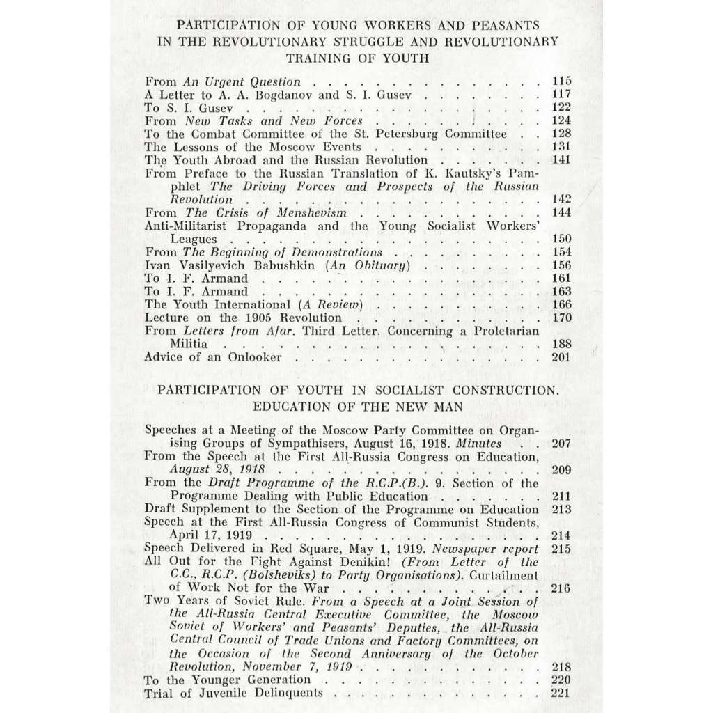 Výbor z Leninových textů týkajících se mládeže. Viz naskenovaný obsah.