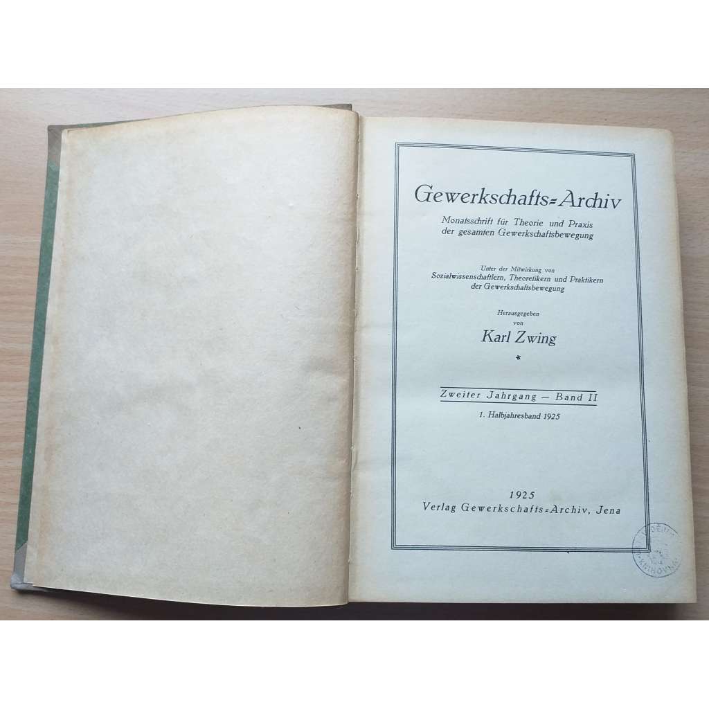 Vydání: Jena: Verlag Gewerkschafts-Archiv 1925. Pův. poloplátěná vazba s titulem na hřbetu, 392 stran, 4° (16,5 x 23 cm)