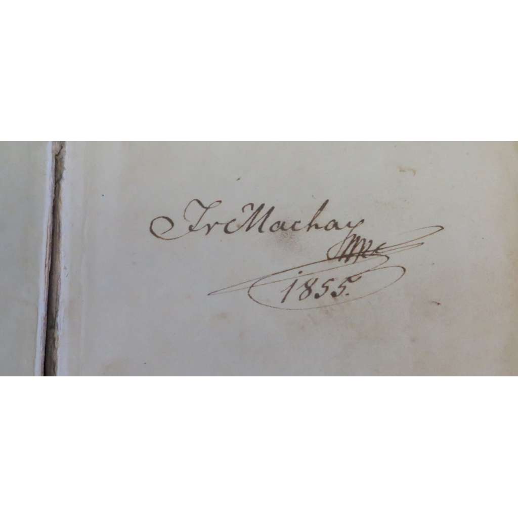 Na přední předsádce je podpis předchozího majitele, slovenského teologa, učitele a spisovatele Františka Machaye pocházejícího z Jablonky na Polské Oravě. Podpis je datován 1855.