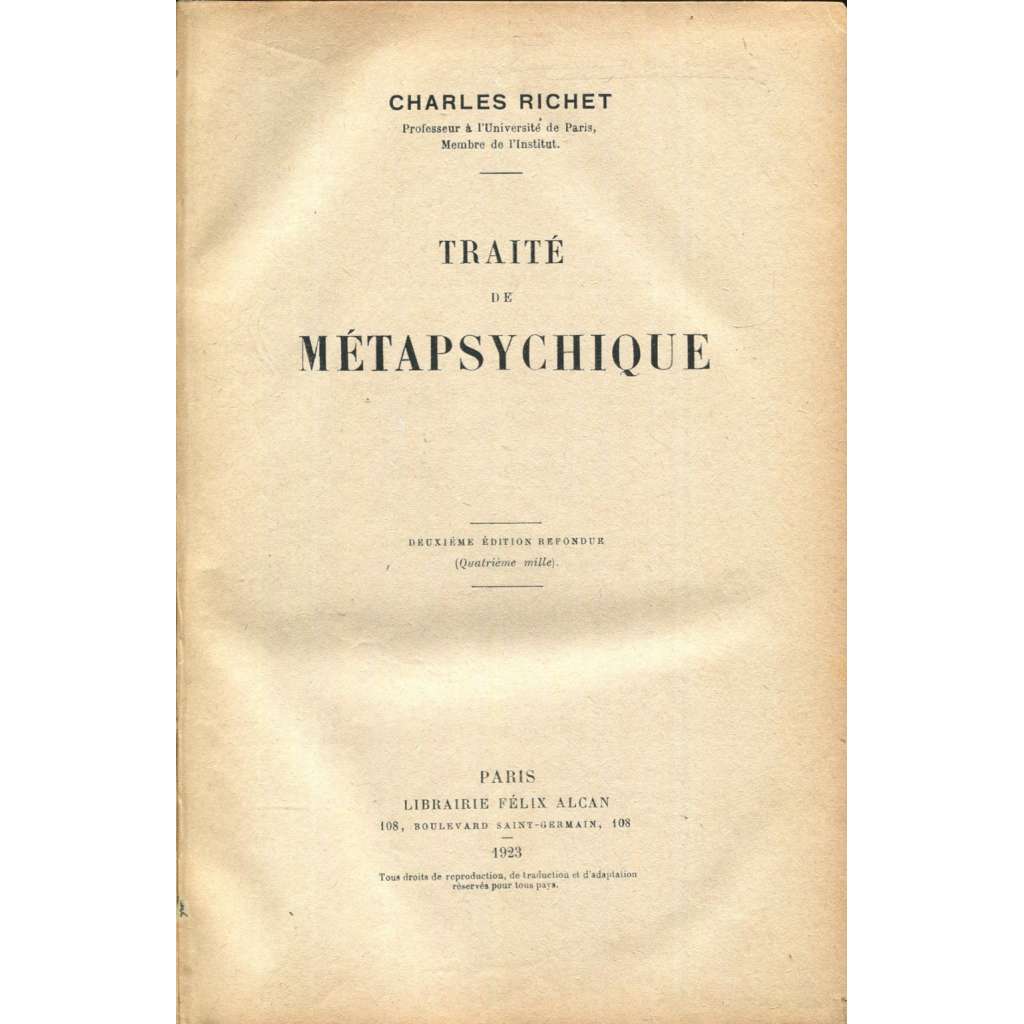 Vydání: Paris: Librairie Félix Alcan 1923, váz., [6]+IX+[1]+847+[1] s., 8° (17 x 24,5 cm)