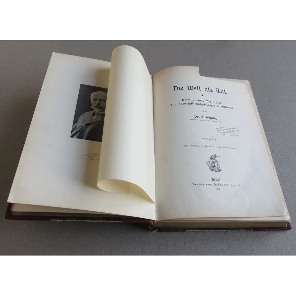 Die Welt als Tat. Umrisse einer Weltansicht auf naturwissenschaftlicher Grundlage. Vierte Auflage. Mit 6 Abbildungen im Text und einem Porträt im Lichtdruck [filozofie, přírodní vědy]