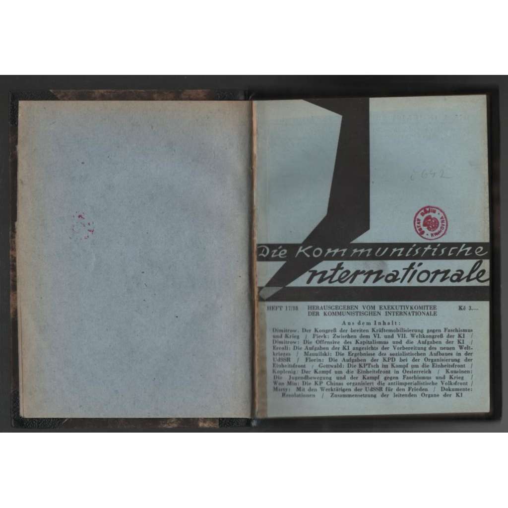Vydáno výkonným výborem Komunistické internacionály. VII. světový kongres Komunistické internacionály, mezi VI. a VII. kongresem Kominterny, úkoly Komunistické internacionály v boji proti fašismu, výsledky socialistické výstavby v SSSR, Komunistická strana Československa v boji za jednotnou frontu, boj za jednotnou frontu v Rakousku, hnutí mládeže a boj proti fašismu