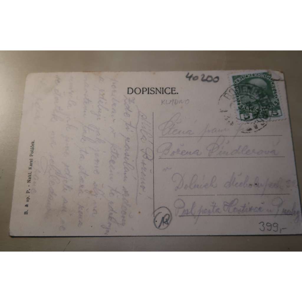 Stará pohlednice, prošlá se zn. (malý formát, cca 9 x 14 cm ).