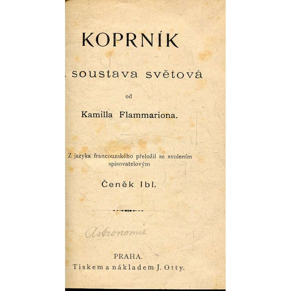 Koprník a soustava světová. Vydal J. Otto, Praha, nedatováno. Stran 255.