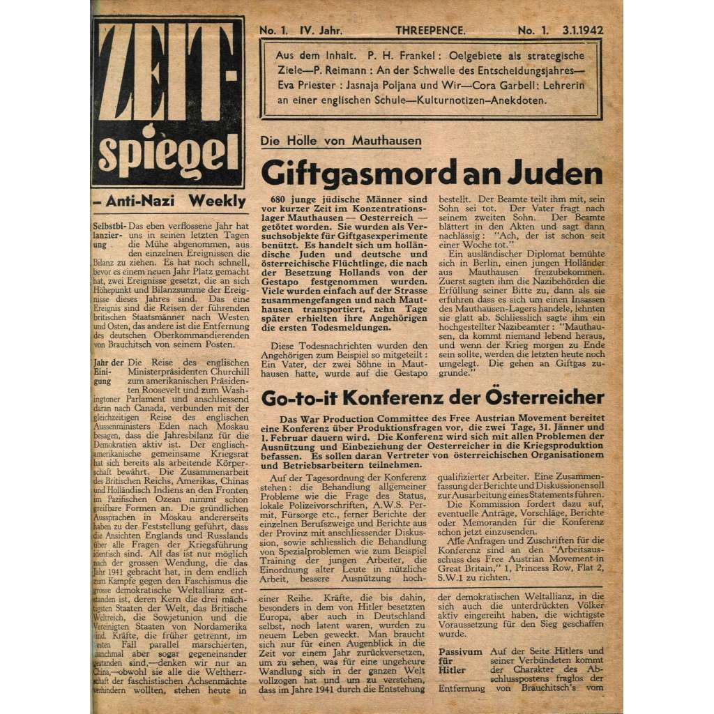 Zeitspiegel. Anti-Nazi Weekly, roč. 4, 1942, č. 1-52 [Rakousko; Rakušané; antifašismus; druhá světová válka; exil]