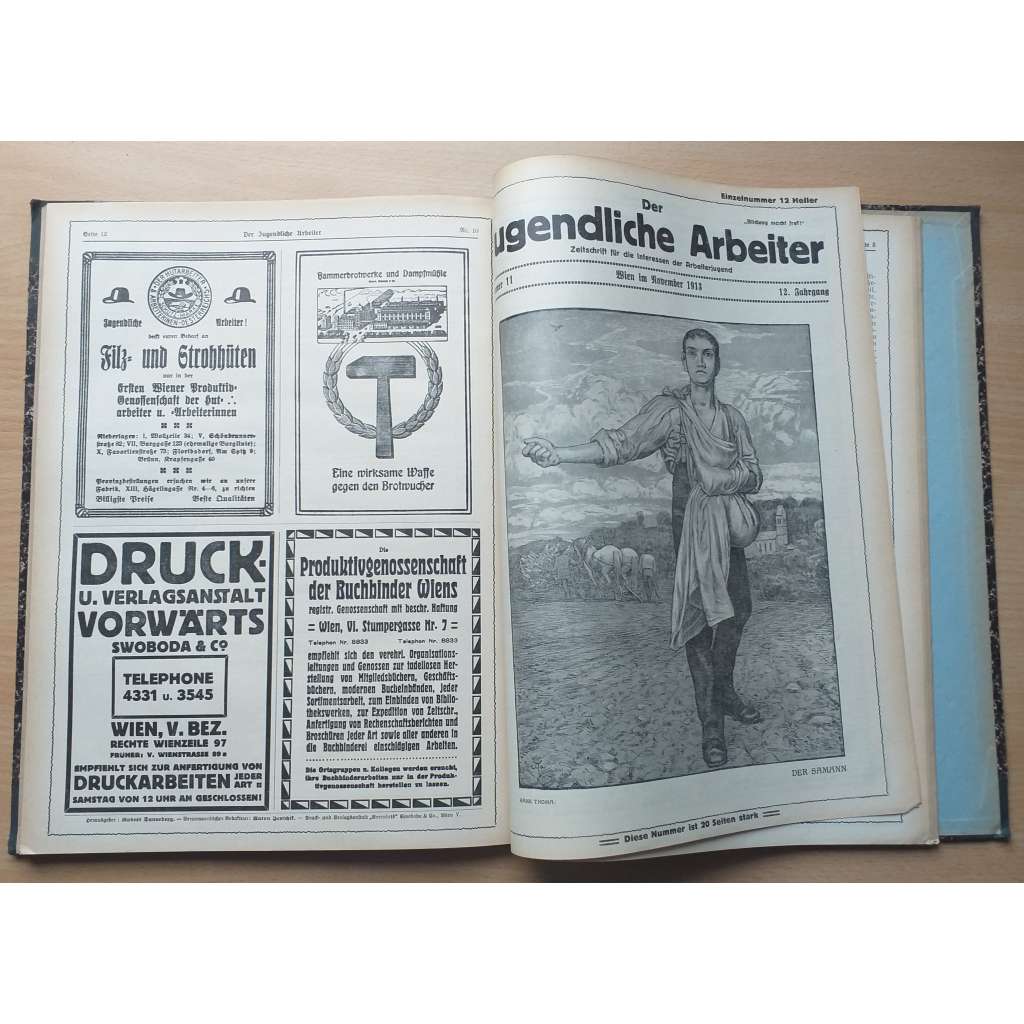 Vydání: Wien: Druck- und Verlagsanstalt "Vorwärts" Swoboda & Co. 1913. Poloplátěná vazba se zlaceným titulem na hřbetu, 8 x 12 + 2 x 16 + 20 stran psaných frakturou s černobílými obr., 2° (24 x 30,5 cm)