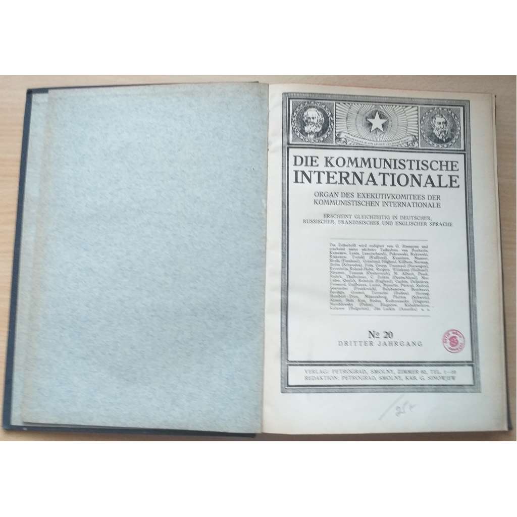 Vydání: Petrograd: Verlag der Kommunistischen Internationale 1922.Plátěná vazba se zlaceným titulem na hřbetu, 136+136 stran s černobílými obr., 2° (19 x 27 cm)